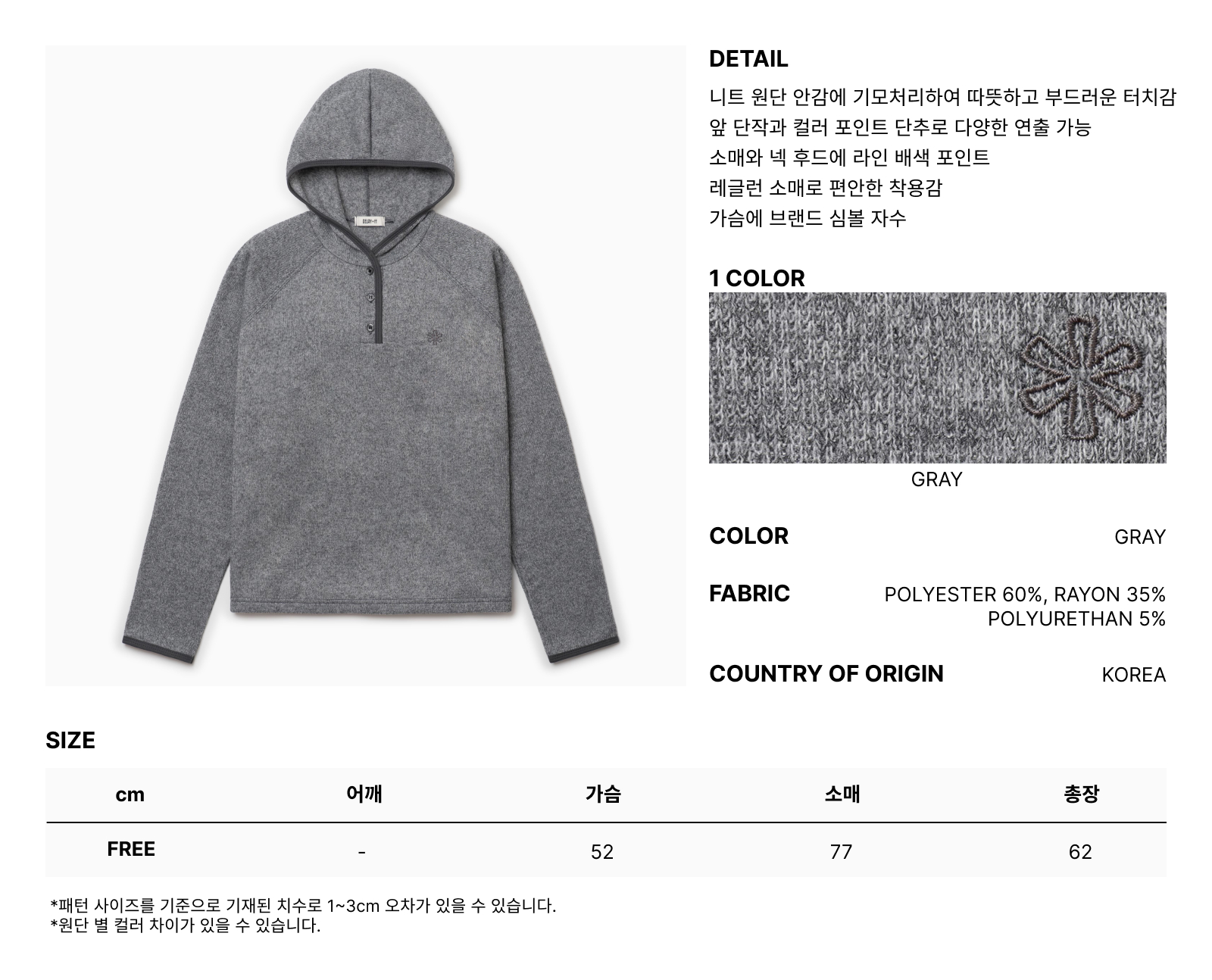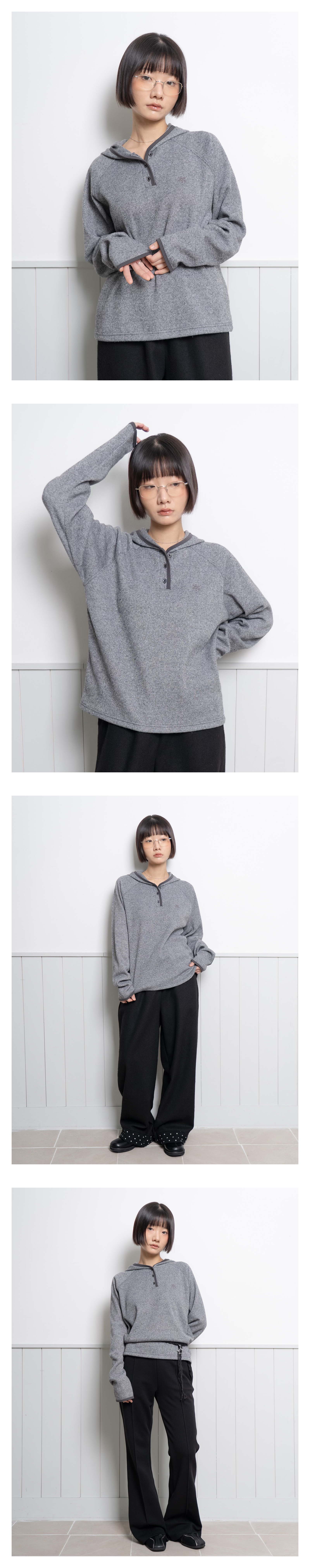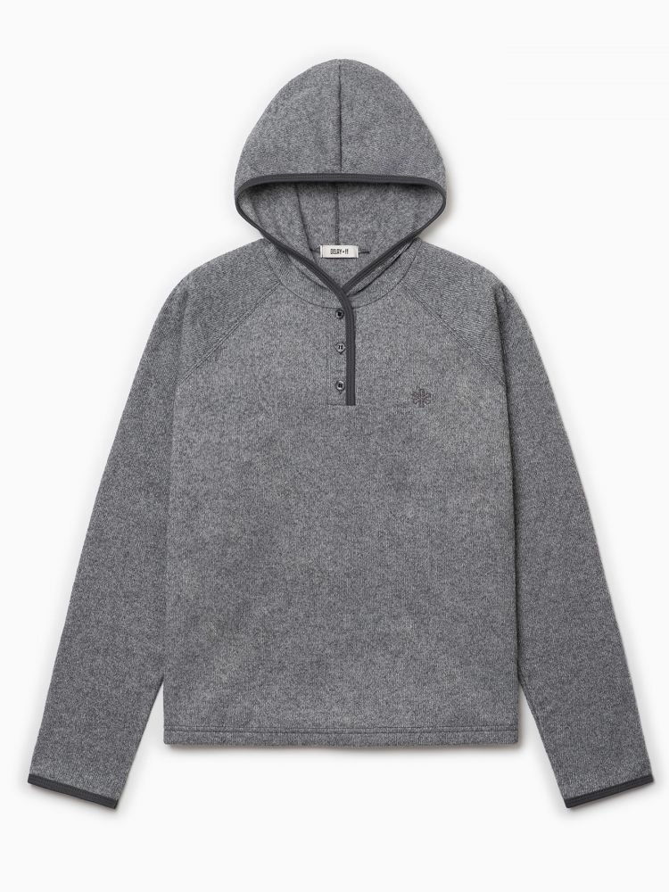 COLOR LINE KNIT LONG SLEEVE HOOD GRAY
