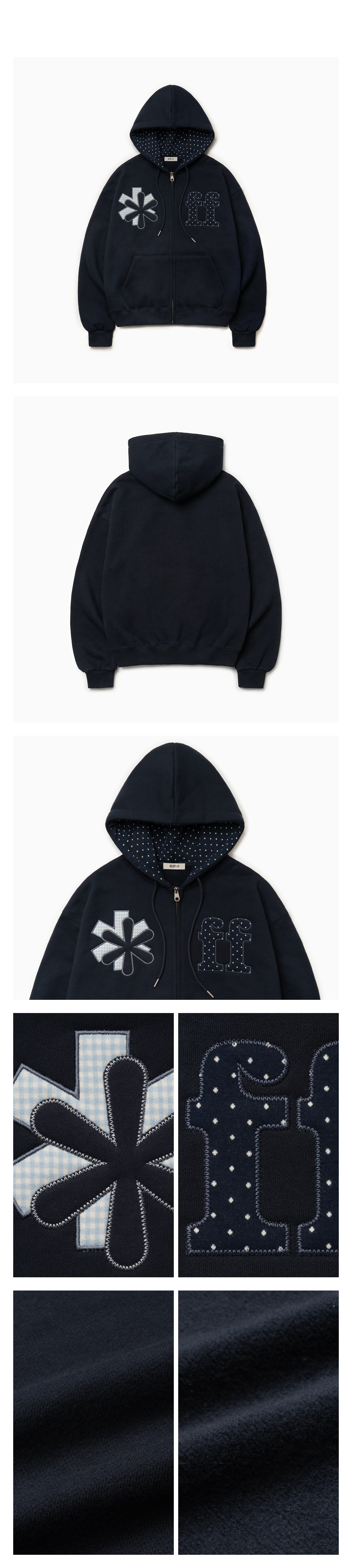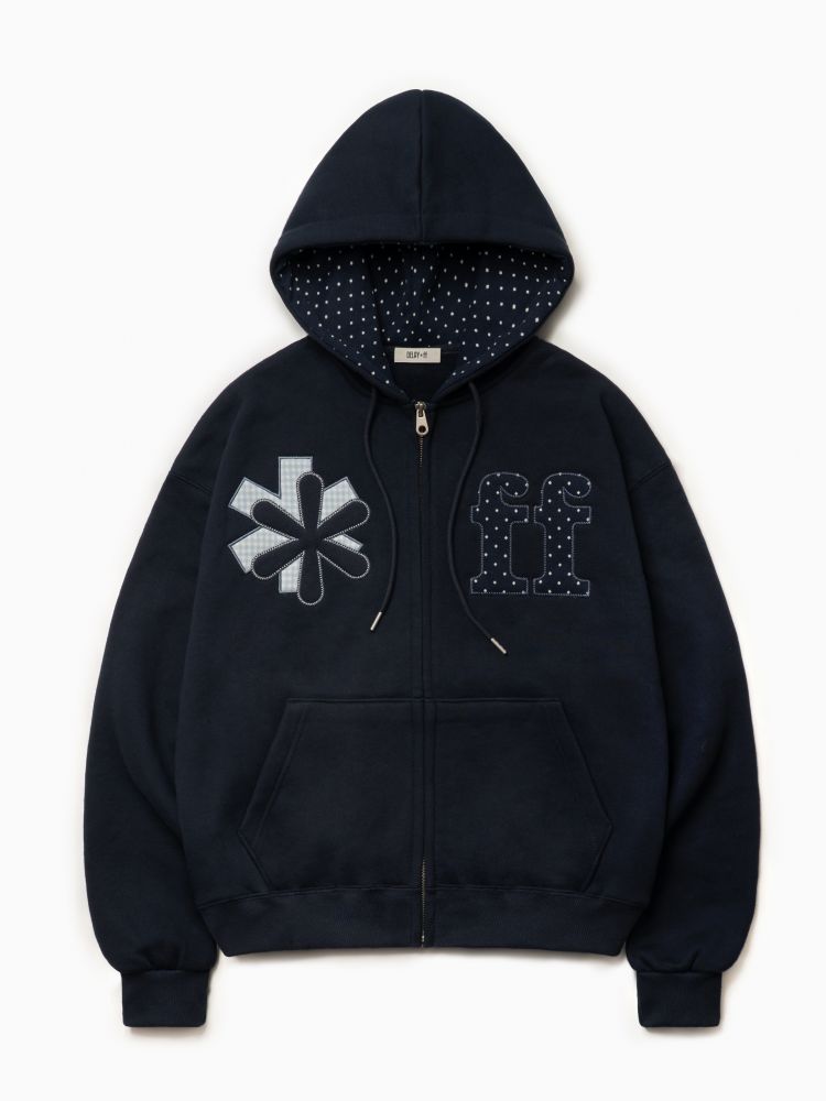 PATCHWORK APPLIQUE HOOD ZIP-UP NAVY