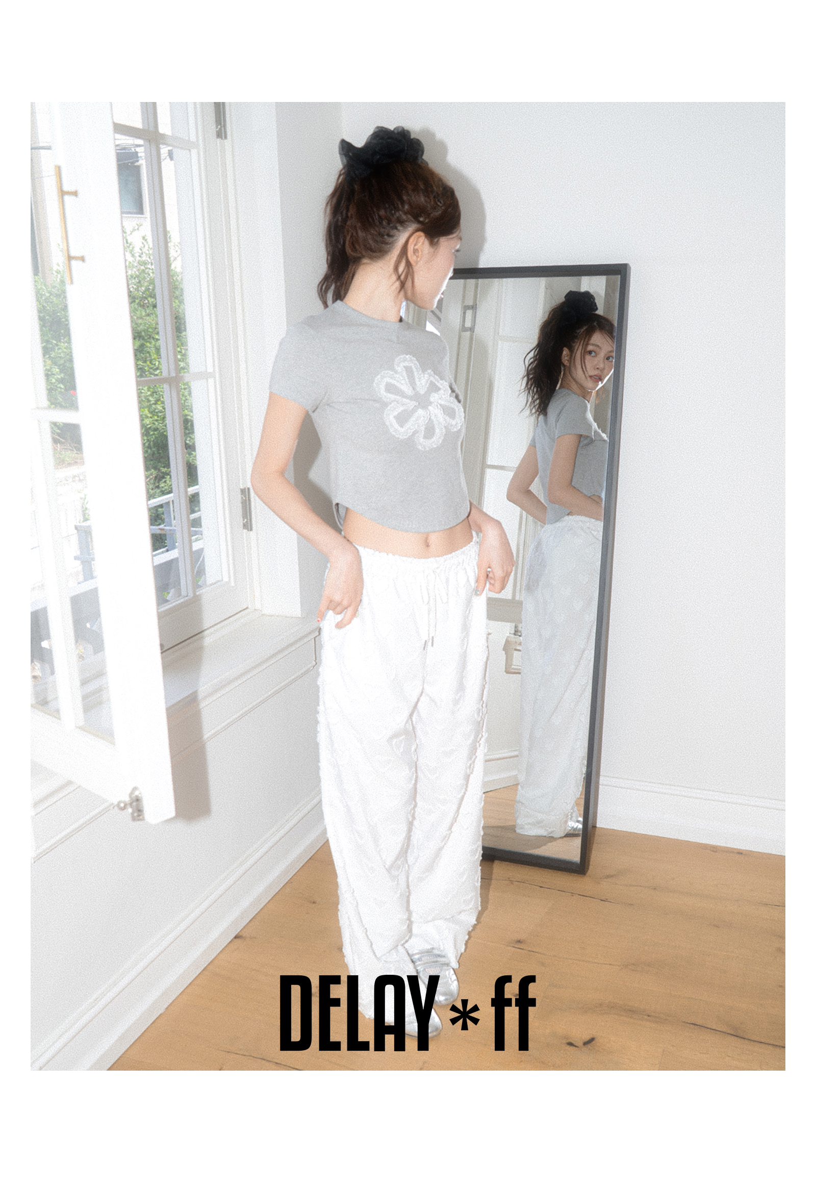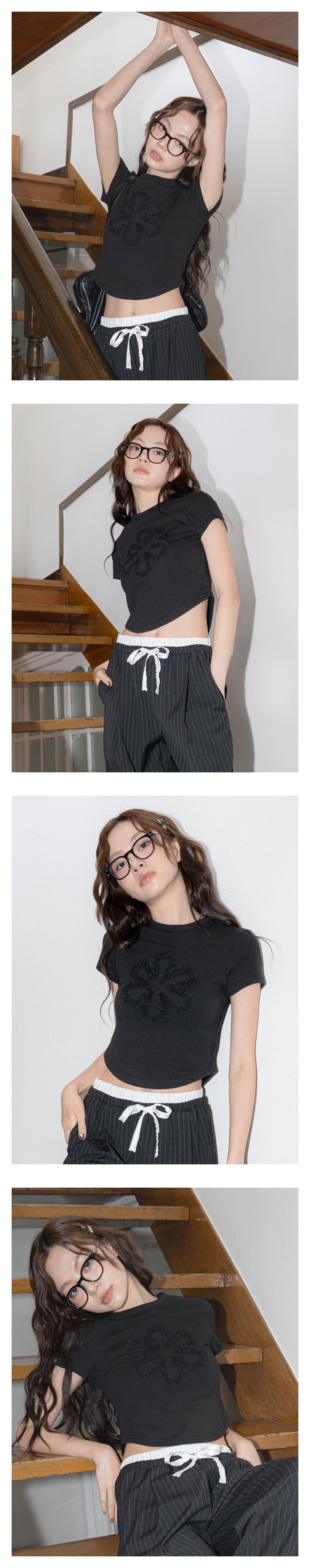 DELAY OFF LACE CROP T-SHIRTS BLACK