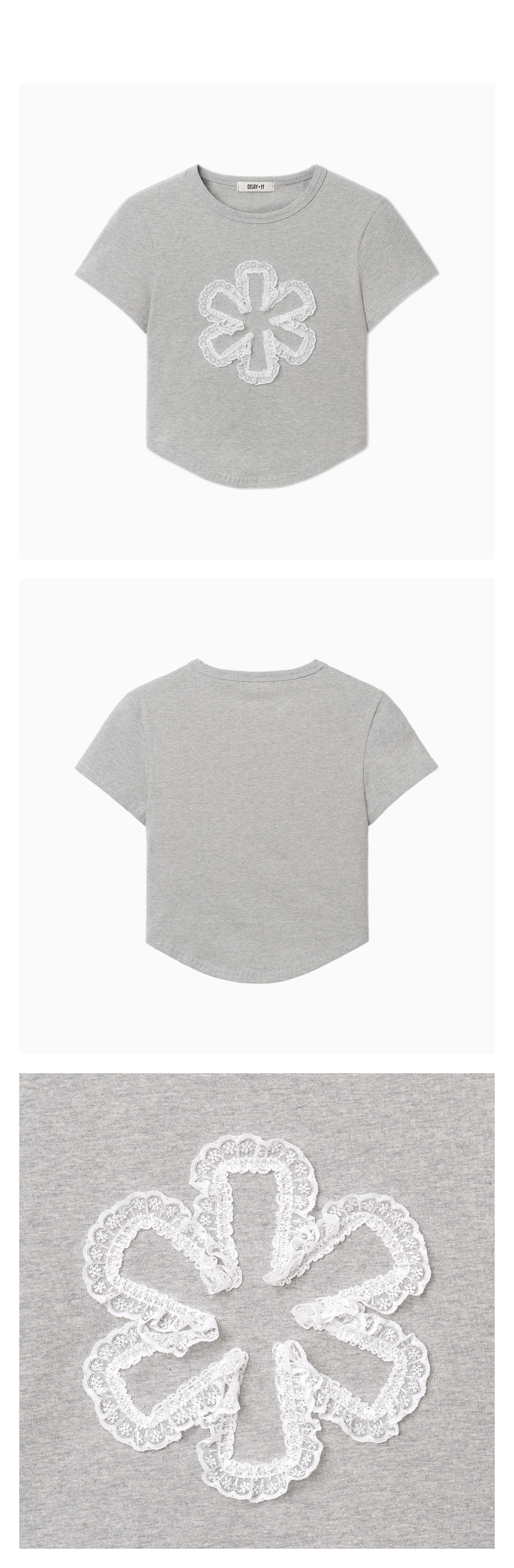 DELAY OFF LACE CROP T-SHIRTS GRAY