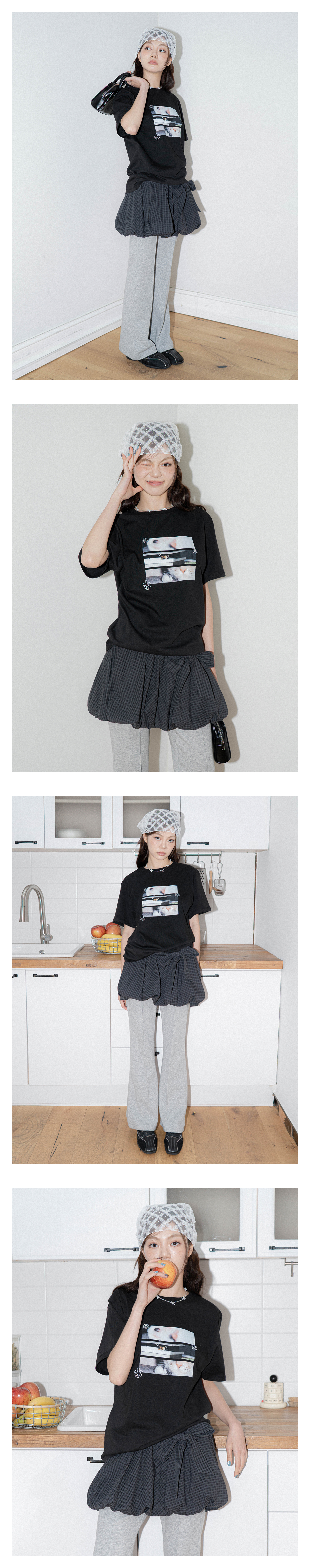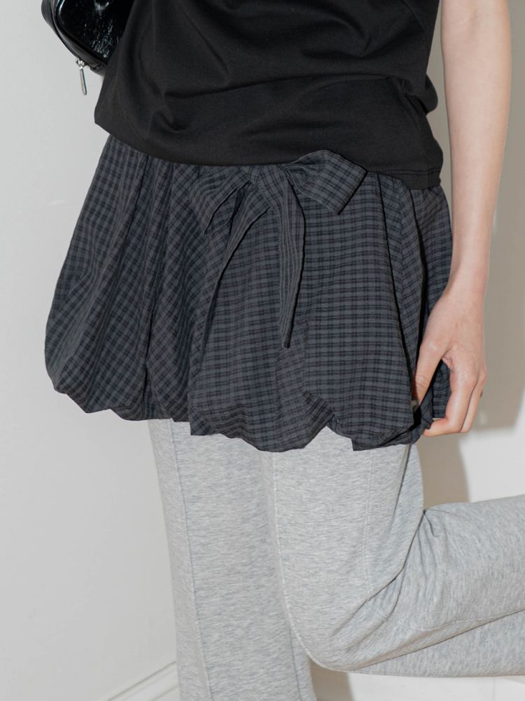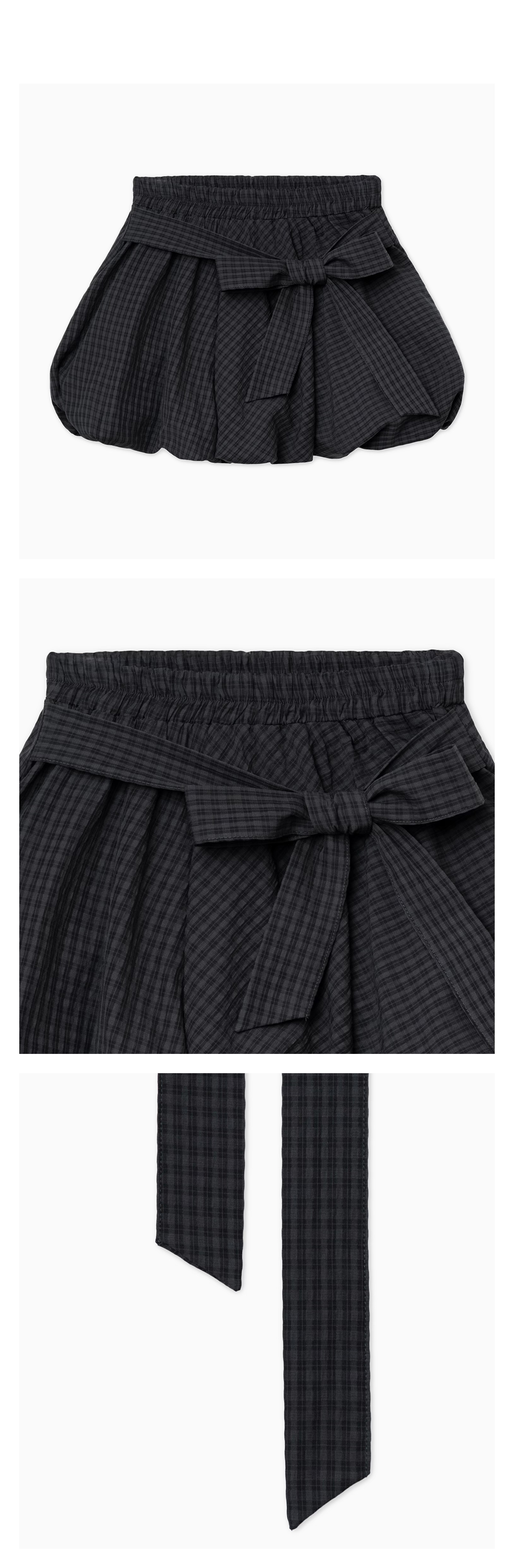 CHECK RIBBON BALLOON MINI SKIRT BLACK