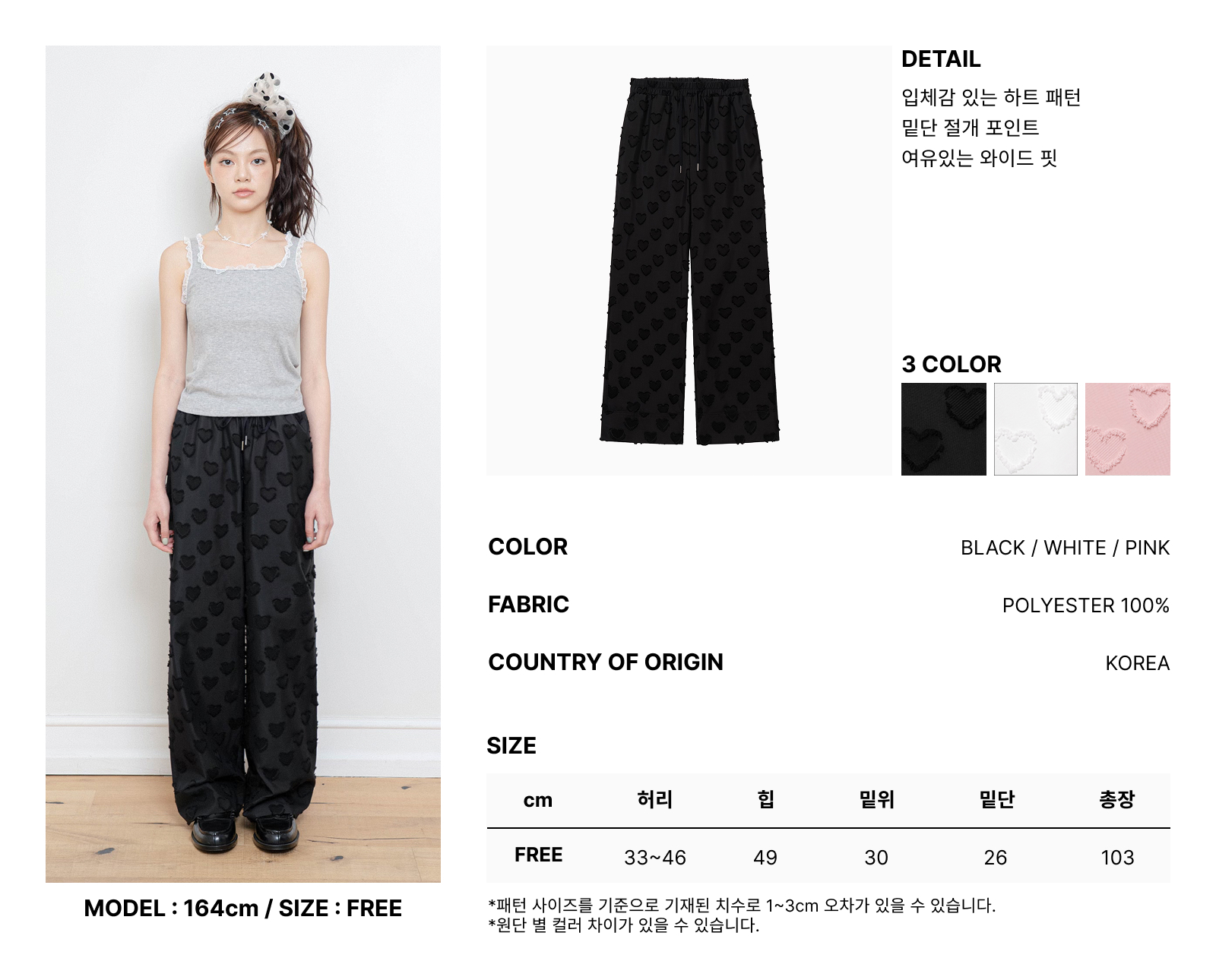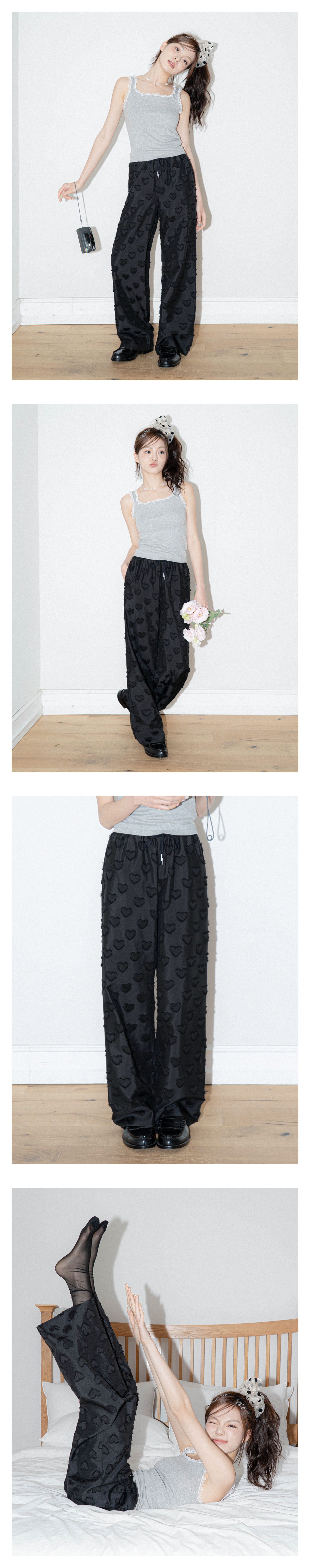 HEART BANDING WIDE PANTS BLACK