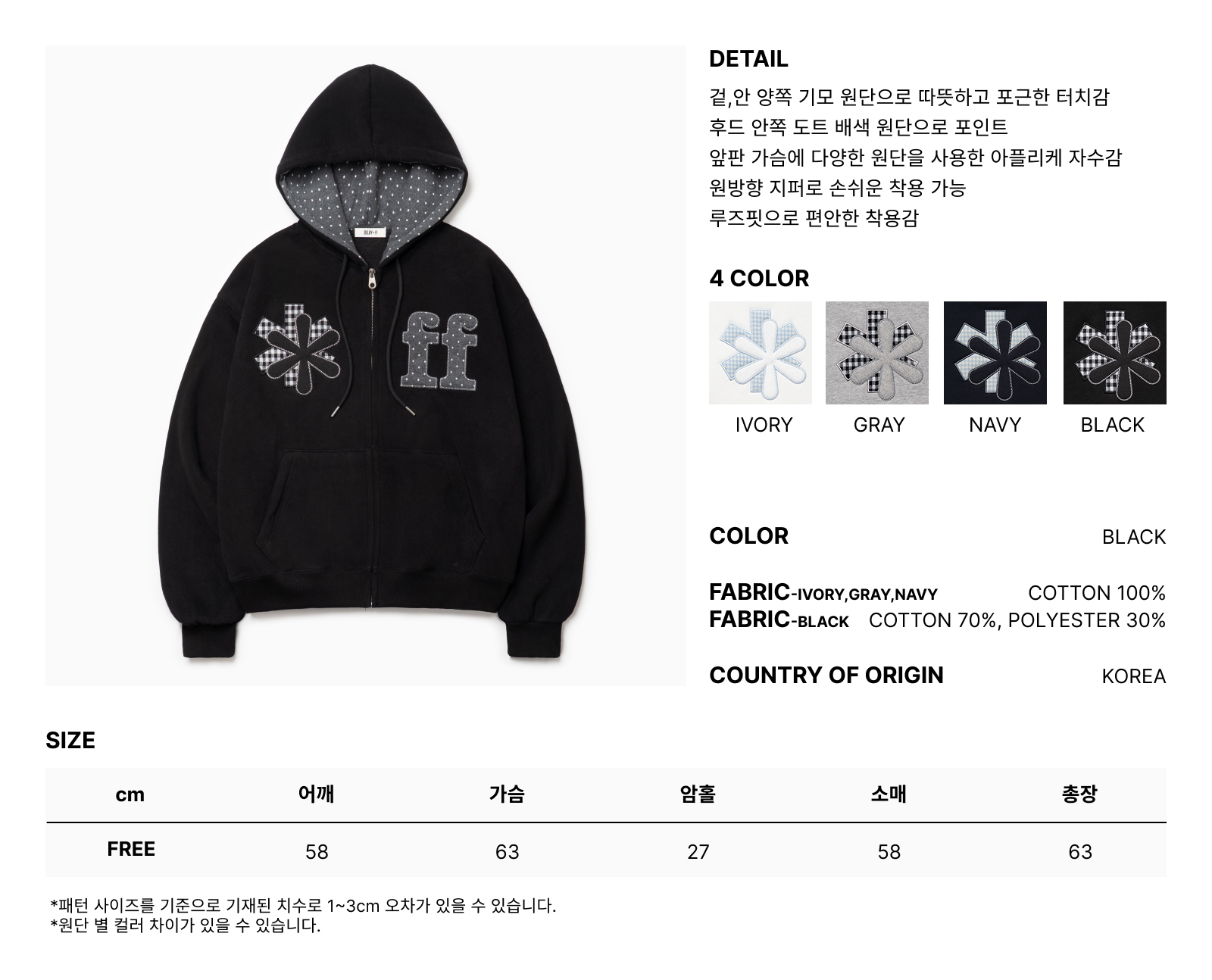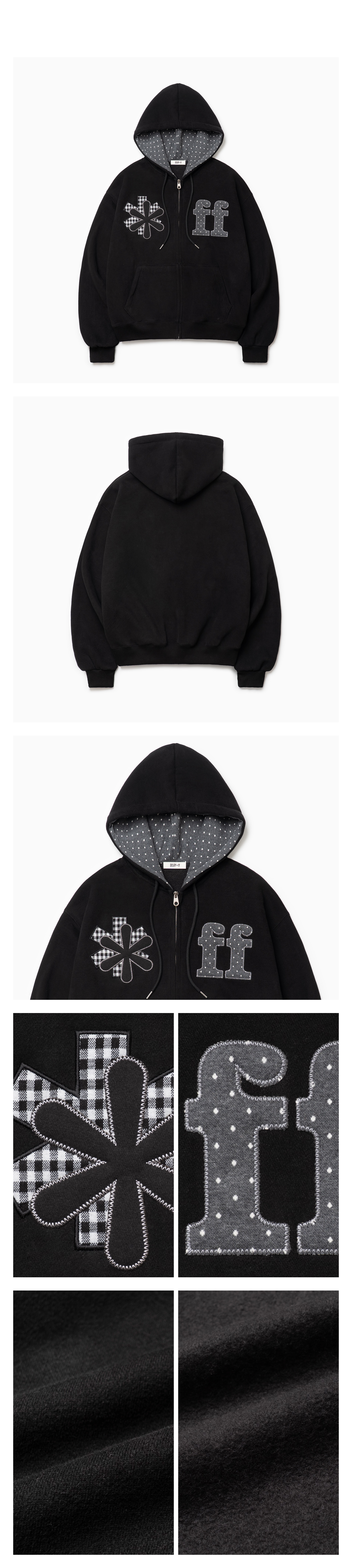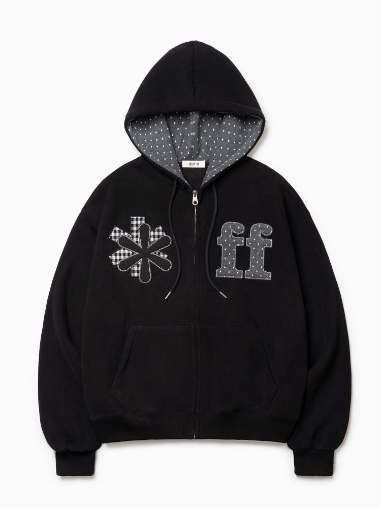 PATCHWORK APPLIQUE HOOD ZIP-UP BLACK