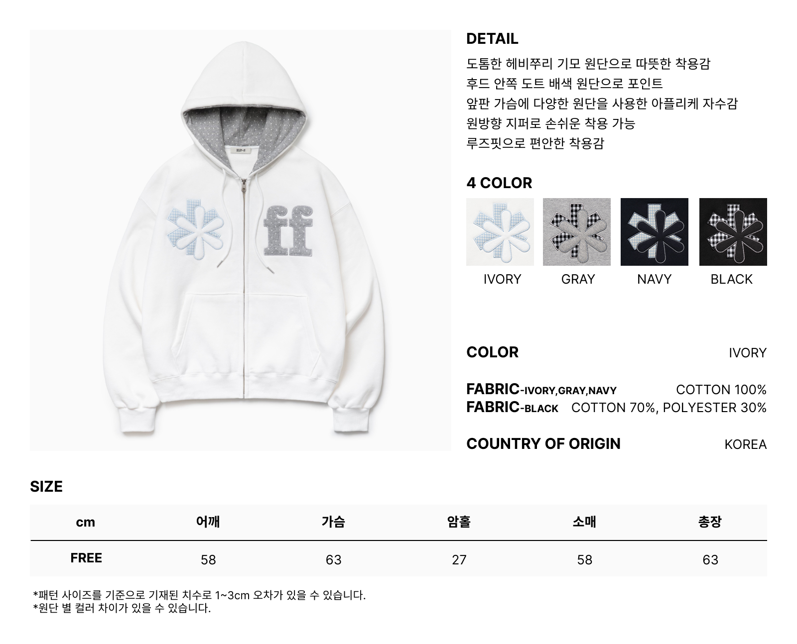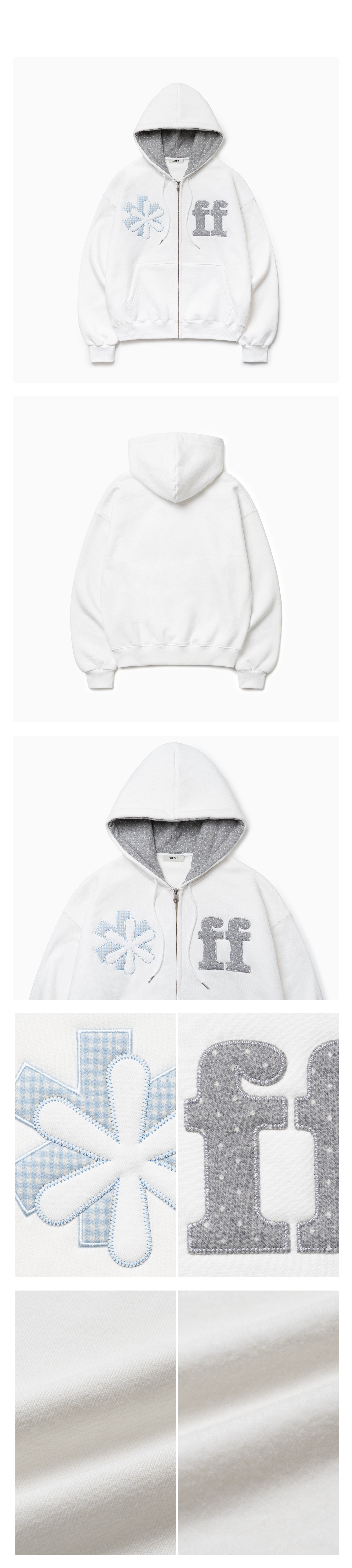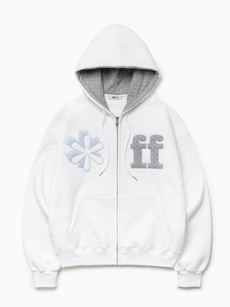 PATCHWORK APPLIQUE HOOD ZIP-UP IVORY